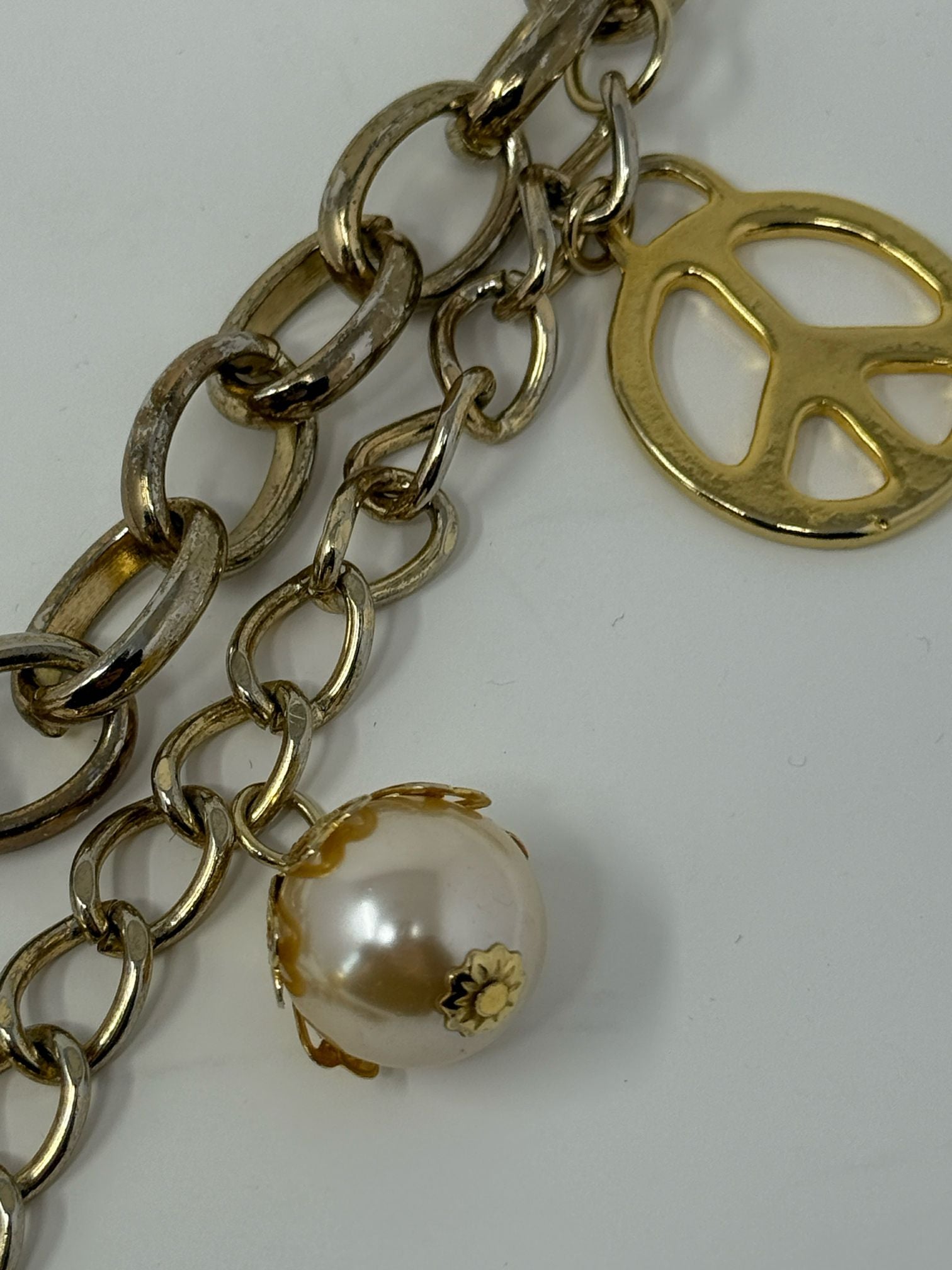 Rare early Moschino gold chain charm belt.  This is a nod to Chanel by Franco Moschino.
