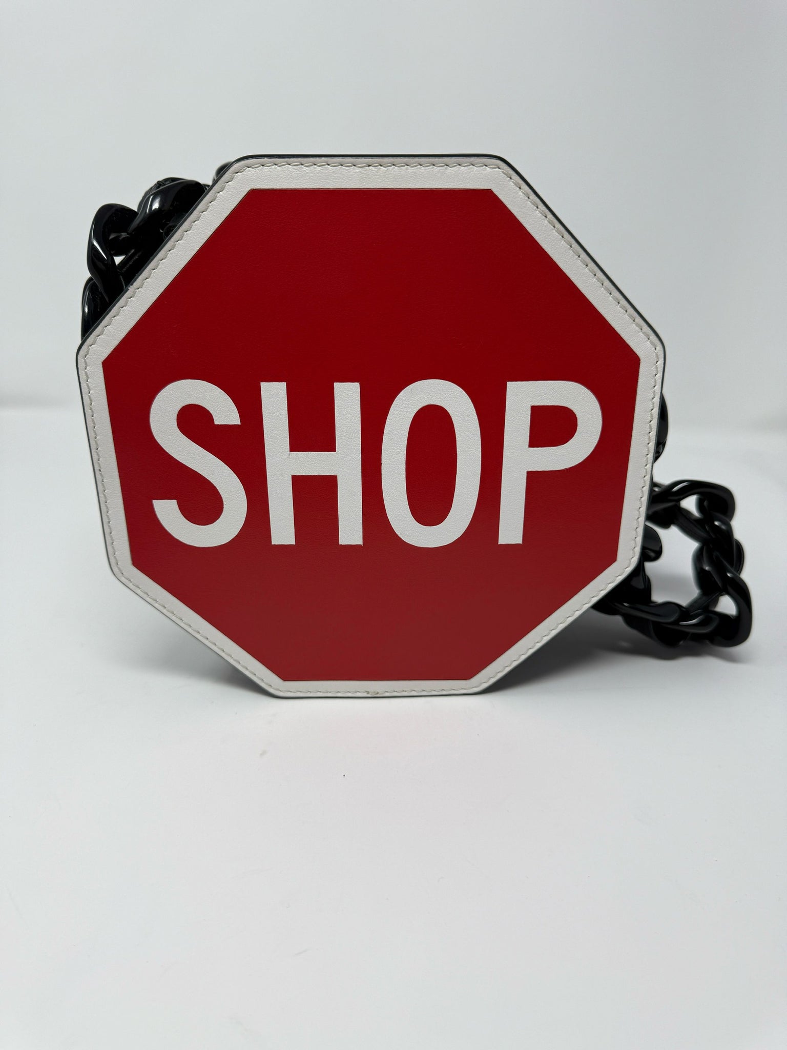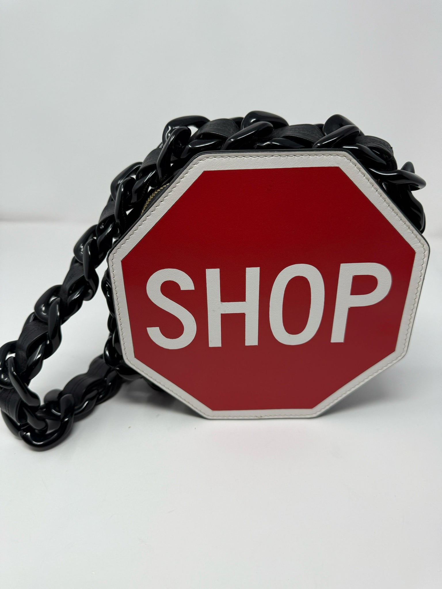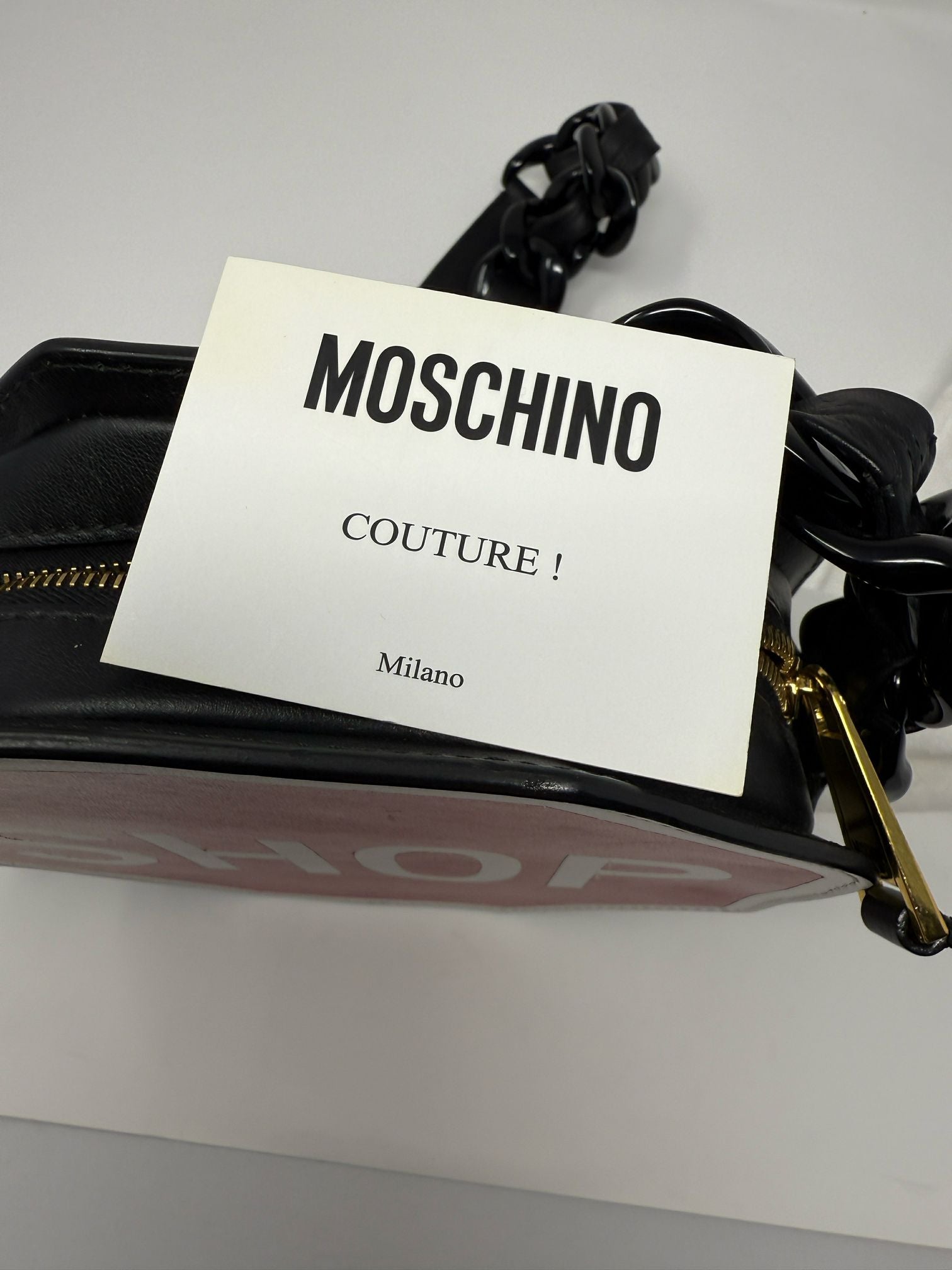 Jeremy Scott took Moschino Style over the top and fun bags like this leather SHOP bag is a great example of his unique style.