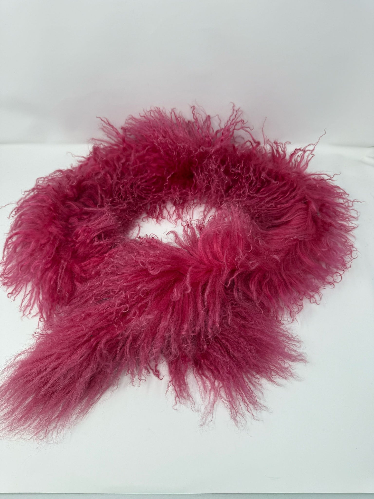 This bold mongolian fur scarf / shawl from the 2000s is a great example of the creative direction of Rossella Jardini. It is a nice pop of color for cold weather wear.