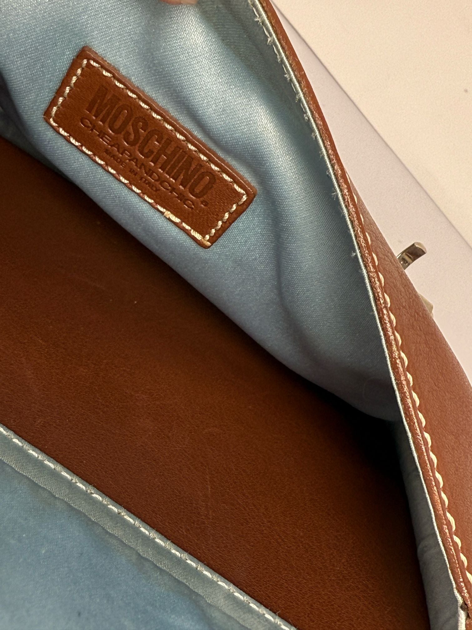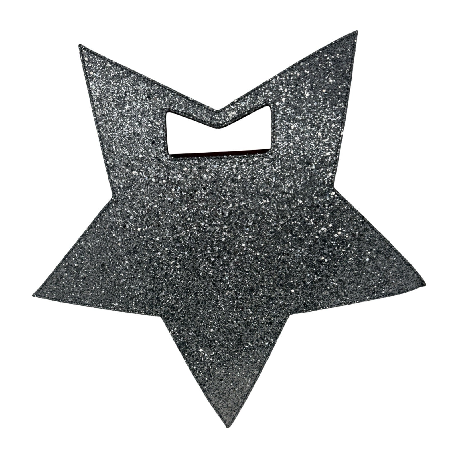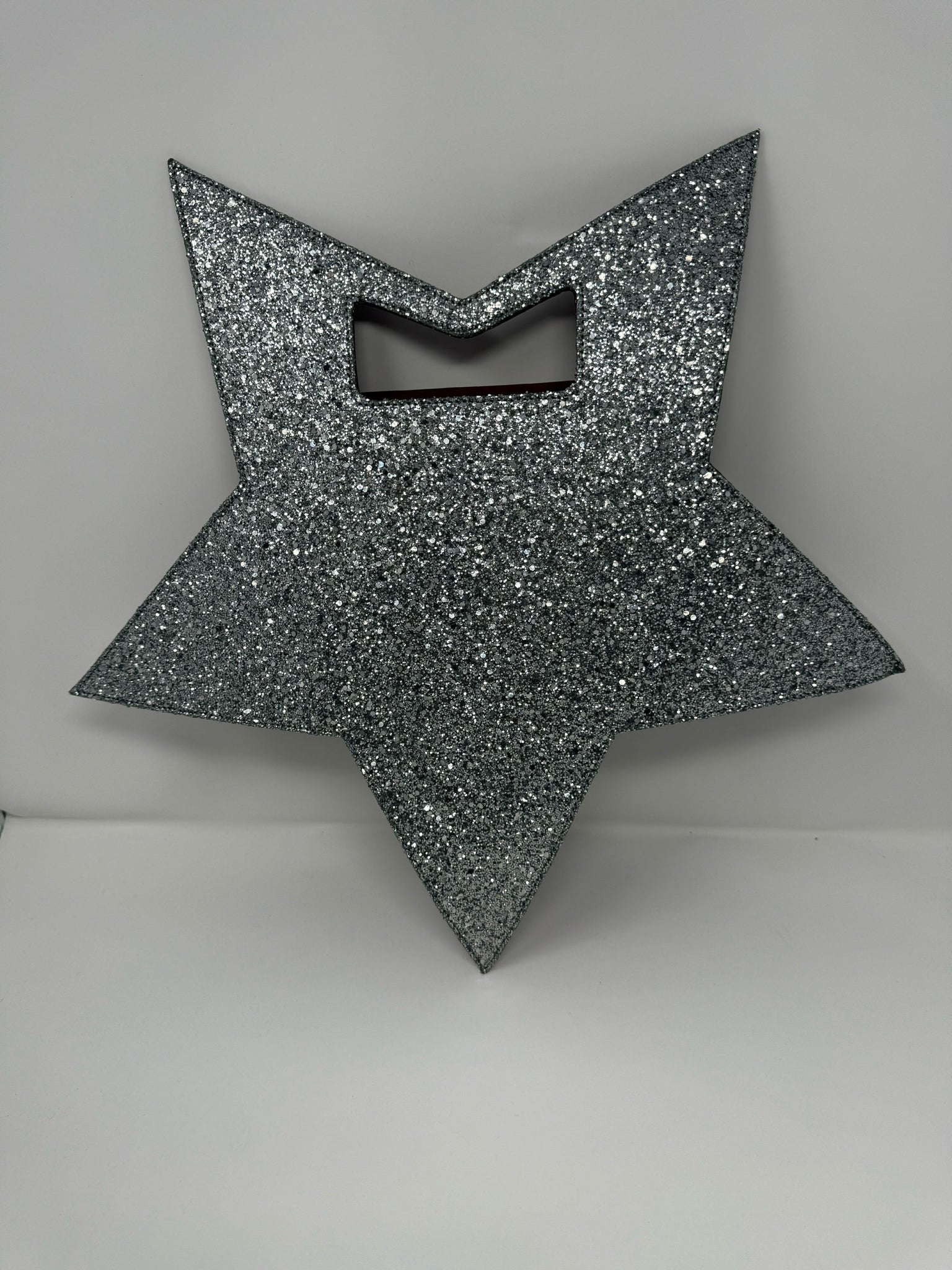Be retro cool using this unique silver glitter star clutch by Moschino Cheap & Chic. Large pouch on the back is big enough for your keys and most cell phones. From the Rosselli Jardini time with the brand.