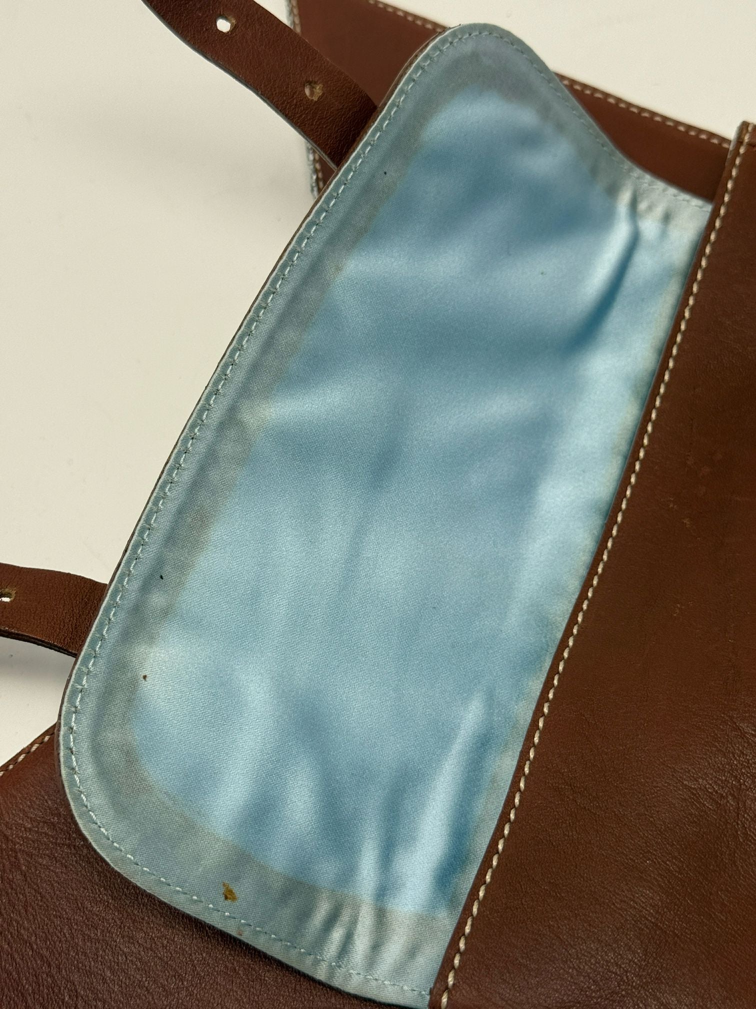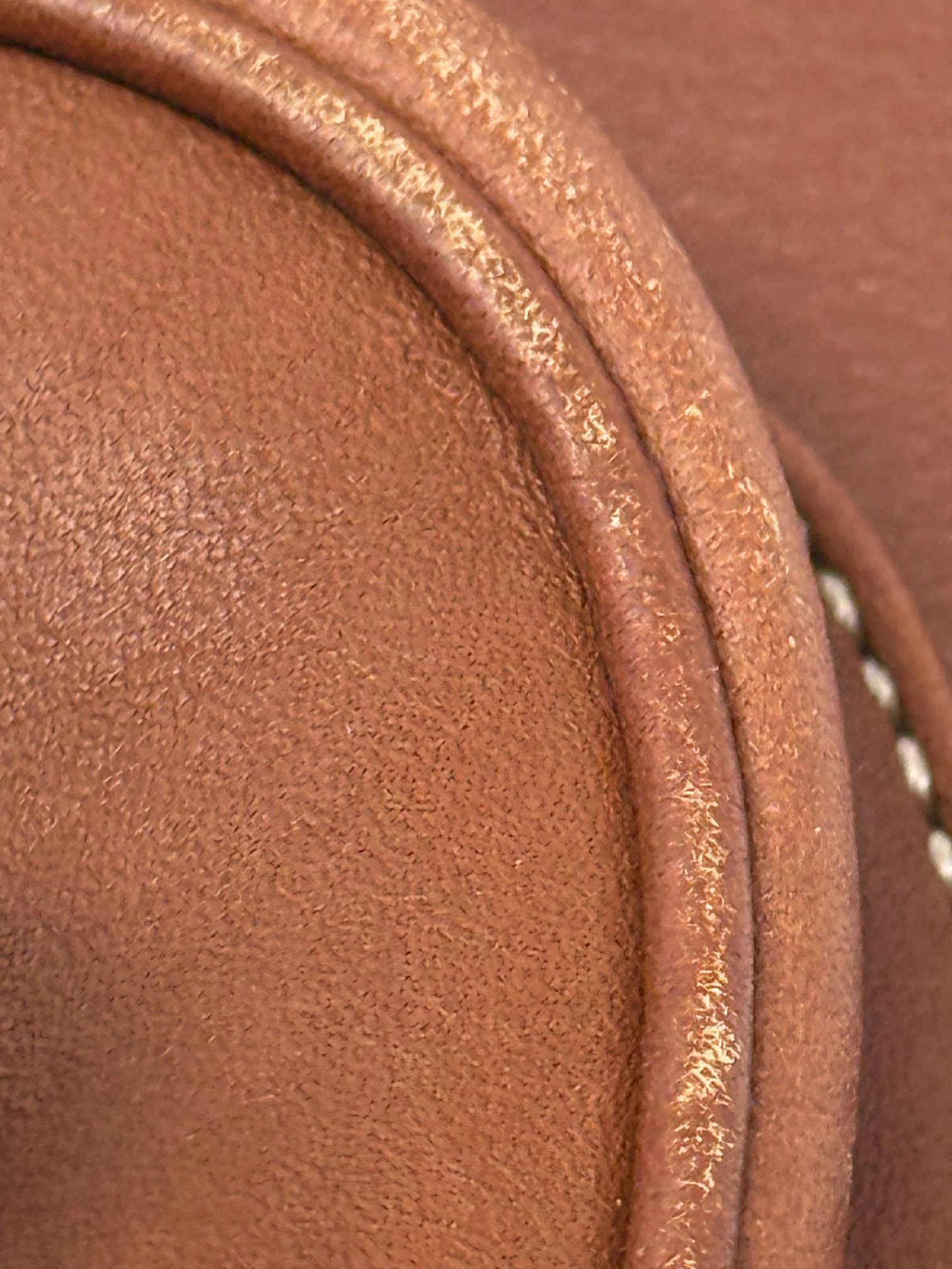 Surface scratches on the leather on the back, and the lining inside the pouch has some bleed through.