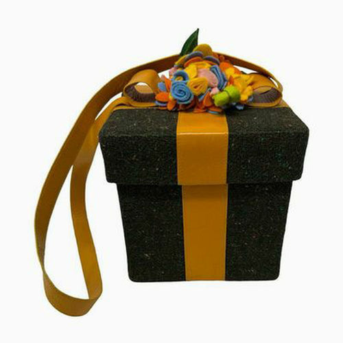 Moschino Brown Gold Leather Gift Box Bag Purse